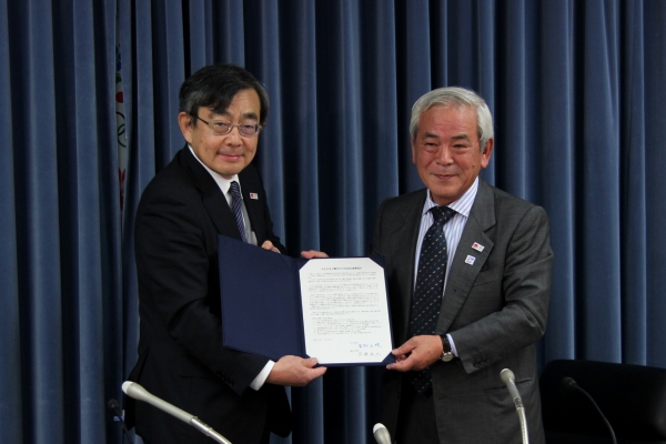 省庁間横断による文化庁官公庁連携協定の調印式。青柳正規・文化庁長官(右)と久保成人・観光庁長官=13年11月20日