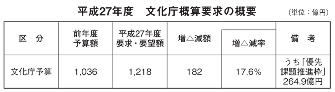 【ニュース】平成27年度 文化庁概算要求概要 決まる