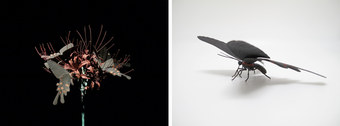 自在置物師と名乗る。国内の若手作家では唯一であろう。江戸時代中期に甲冑師の一派が生み出した金属工芸の妙技。満田晴穂は、現代において失われつつあったその技を受継ぎ、昆虫を中心に様々な動物を造形する。写実性の高さと体節・関節の「自在な」動きまでも再現する手仕事は、まさに超絶技巧。伝統を継ぎつつも今日にあって斬新な作品は、森美術館「六本木クロッシング2013」で紹介されるなど、現代美術としても大きな注目を集めている。