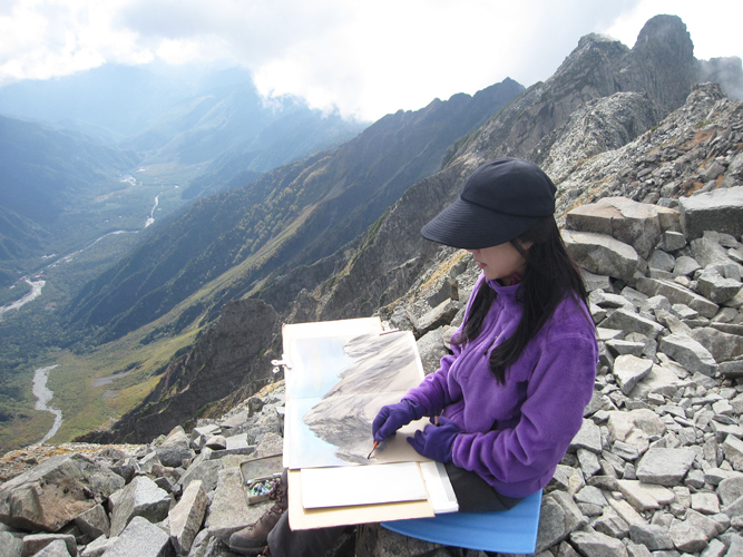 現在私の作品テーマは、地球とそこに生きる生命の奇跡についてです。それをどう表すか、どうすれば見る人の心を動かすことができるかを常に考えて、できるだけ普段からも地球のエネルギーを実感できる山岳地などへ足を運び、また歴史の深い国々などを訪れてスケッチ取材をしています。