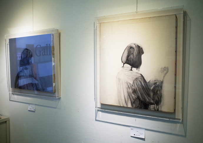 《Wipe(拭い取る)》シリーズ。ほとんどの作品をアクリルケースに入れているのは、絵画を「もの」として提示するため