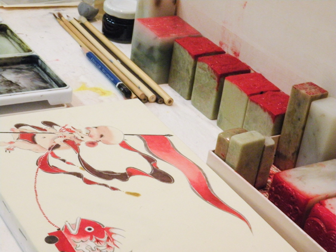 初個展会場でもそうだったが、とにかくいつも描いている。