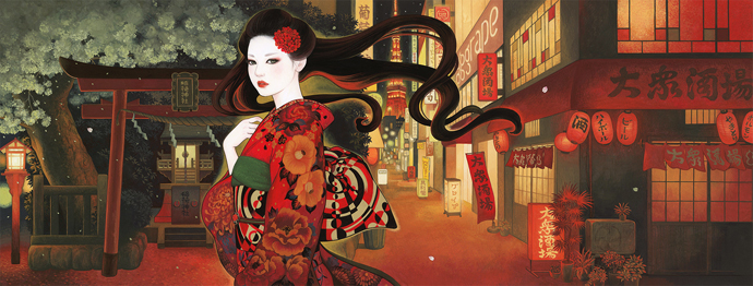 1973年埼玉県生まれ。1996年女子美術大学絵画科洋画専攻卒業。ステーショナリー制作会社で3年間勤務後、フリーのイラストレーターとして独立。2012年、美術家・天明屋のプロデュースする TENGAI GALLERY での個展開催を機に、本格的に画家活動を開始。2016年ニューヨークでグループ展「TENGAI 3.0」、2018年台湾・台北で個展「相搏・相縛」開催。2019年1月18日(金)~2月16(土)、2月21日(木)~3月23日(土)まで銀座・ギャラリーMUMONにてグループ展「鸞翔鳳集」に参加予定。