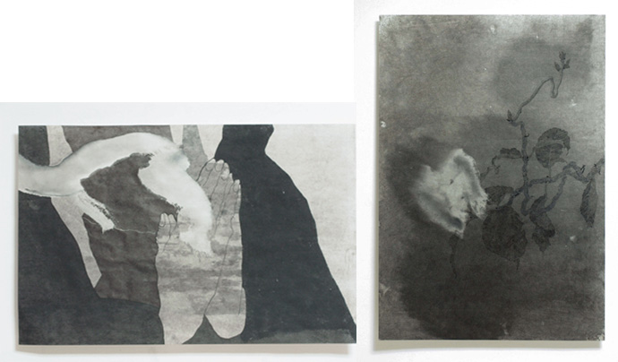 (左)《Botus》2018年 27.2×42.8cm 和紙に墨