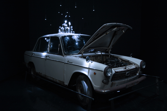 ルーフトップの植物の根。かつて共に時を過ごした人たちとの思い出は廃車になった今なお蓄積し育ってゆく。