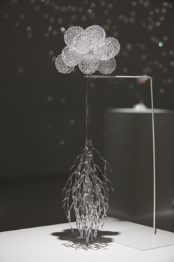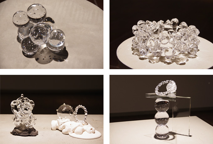 バーナーワークによって生み出される神秘的な造形は、脆さ、危うさをも美に昇華する。硬質ながら流動的、固体と液体を行き来する制作過程や壊れてしまうところにもガラスの魅力を感じるという。