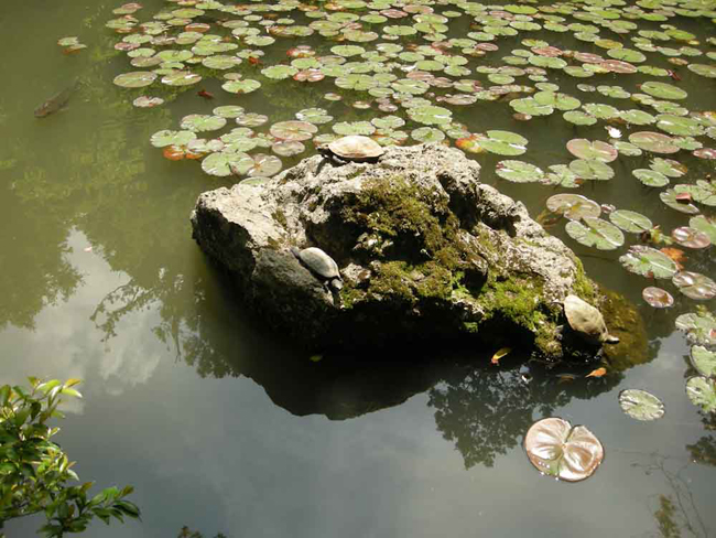私の造形制作も自然からの恩恵を強く意識している。造られた自然界は、自然を意識した彩色を試みる私に様々なヒントを与えてくれる。経年や季節によって変化する苔庭、葉や池の表情。しかし美しいだけが自然の世界ではなく時に人を襲ったりするのも自然の姿だ。腐りかけた葉や枯れた木々も静かな色を放つ。