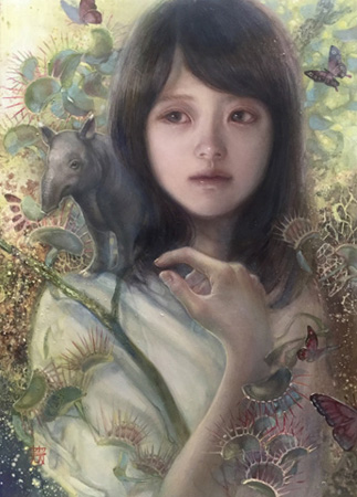 学生時代からの作品のテーマは”幻想的かつ人間が安らげるような世界”。爽やかな自然を背景に動物と戯れる無垢な少女をよく描いた。