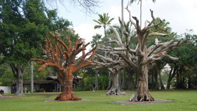 テーマは「パシフィックセンチュリー」ということで、ハワイの独自の社会、環境などについてのコメントとなる展覧会を試みた。会場は7カ所に分かれているが、地元の4つの美術館と植物園が参加していると言うことで、美術館ネットワークが基盤となったトリエンナーレだという事が出来るだろう。しかし美術館が互いに話し合いをしたわけではなく、トリエンナーレ事務局が各美術館に個別に話をして作り上げたネットワークである。