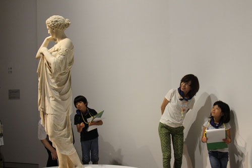 今夏行われた「ルーブル美術館展」で展示室を冒険するアート・エデュケータと子供たち