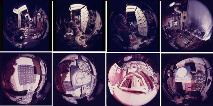 中嶋興が魚眼レンズで撮影した松澤宥のプサイの部屋のスライドショーより。協力:慶應義塾大学アート・センター