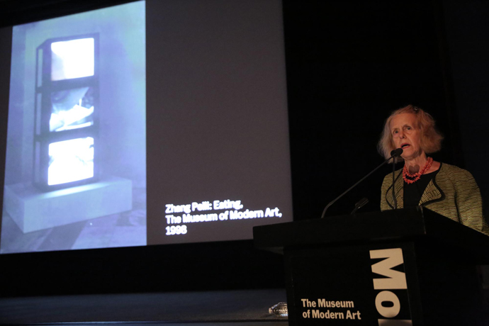 MoMAの出版記念会で語るバーバラ・ロンドン Photo © Paula Court
