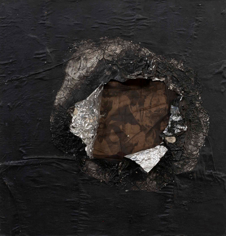 長い抵抗の歴史は、ジャック・ホイッテンが抽象と社会意識を融合させた1964年の作品《バーミンガム》に見ることができる。警官と警察犬がデモの黒人を攻撃している新聞の写真を中心に据えつつも、公民権運動の発火点となった前年のバプチスト教会爆破事件を参照して漆黒の絵具で画面を塗り込み、金属箔の破れ目の奥の、さらに網目のストッキングの背後に写真を置いて、抽象言語で事態の深刻さを表現する。マーク・ブラッドフォードの最近の大作や、黒人知識人の著作やテレビ画像を植木鉢と共に黒塗りの金属棚に並べ音楽を派手やかに流すラシッド・ジョンソンのインスタレーション作品と同じ会場に並びながら、静かに存在感を主張する。