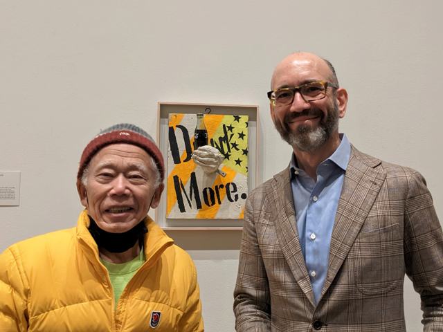 《ドリンク・モア》の前に立つ篠原有司男と担当キュレーターのカルロス・バスアルド