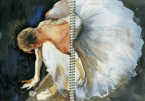 今回、広田稔(1959年広島県生まれ、白日会常任委員)は50冊のスケッチブックという形式で作品を発表する。国内外で取材した風景、静物、白馬、バレリーナなどを、油彩以外のあらゆる技法で描写。ワトソン紙、ホワイトワトソン紙、ブレダン紙など、さまざまな紙のスケッチブックを用いることで、同じテーマでも異なる発色や効果をみせる。画面にはマティスやロダン、ボブ・ディランらの言葉を一言ちぎってコラージュし、新たなイメージを展開させている。