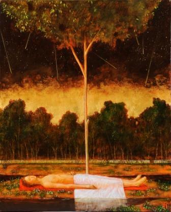 「星が降る夜」 65.2×53.0㎝ テンペラ・油彩・金箔、キャンバス