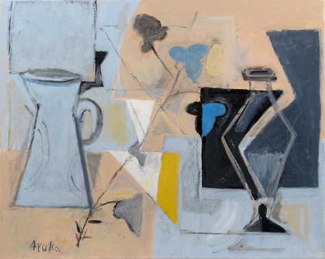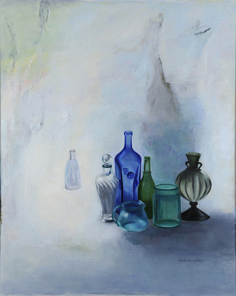 島田鮎子「ふたつの器とひとつの枝」72.7×90.9cm 油彩、キャンバス