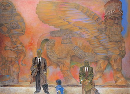 奥谷博(独立美術協会)「飛牛とギルガメッシュの自画像」2013年 油彩、カンヴァス 作家蔵