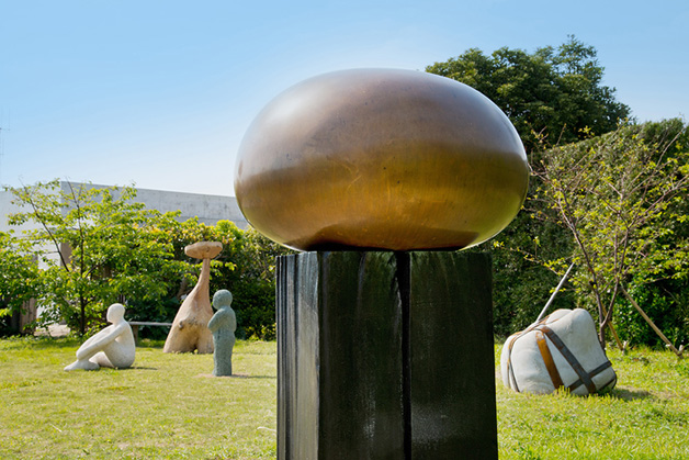 清水一直 『角柱と歪んだ球』1993年 ブロンズ H160×W100×D85 金谷美術館蔵