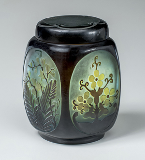 エミール・ガレ工房製「花文ガラス製たばこジャー」 1920年ごろ フランス