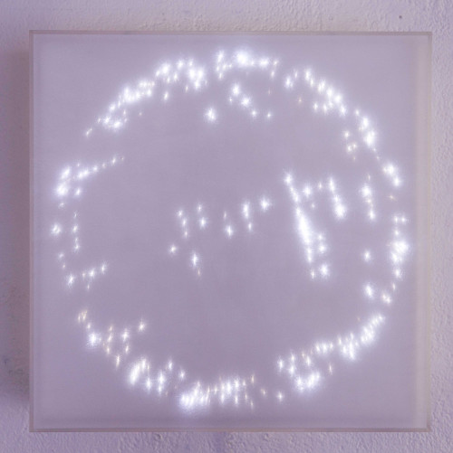 アクリルやLEDの素材のほか、映像媒体を用いて人間、自然、生命などの宇宙観、芸術観を表現する現代美術家の岩澤有徑(1958年京都生まれ)の個展が開かれている。
