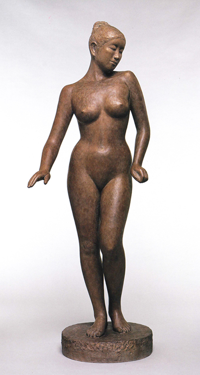 そういう事情のせいで、今回の個展には、治郎、淳両氏の作品も出陳されている。そこでさらに付記すれば、治郎氏は、典型的な官展彫塑のリアリズム作家。とりわけスポーツマンの生き生きした姿と精神性の表現に長じていた。淳氏は近年の物故、青春期の匂やかな女性の理想美を追求、その浪漫的情趣は、周知と言っていいであろう。