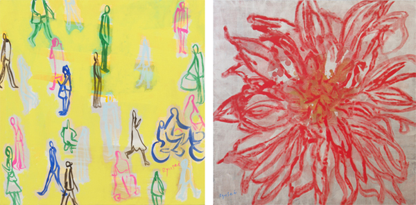 (右)「Harmony ダリヤ」 100.0×100.0cm アクリル、キャンバス