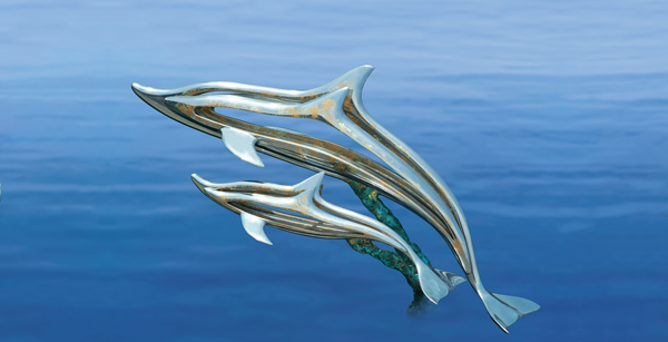 この経験から、「シュプリンゲン」(飛翔)というシリーズから「生と静」というテーマによる作品づくりが始まったんです。と言いながら、躍動感のあるイルカは好きなんです。人間もいつも躍動している訳ではなく、溜めがあっての躍動であり、苦しみがあっての感動だとか、いろいろあっても最後にはすべてが喜びになるようなものを創る。そのために、最近はイルカという形を借りている、という感じでしょうかね。