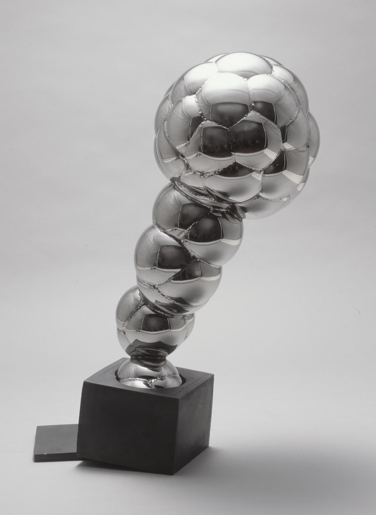 武蔵野美術大学大学院を修了し、個展やコンクール展、「雨引の里と彫刻」展などで活躍する彫刻家・戸田裕介(1962年広島県生まれ、武蔵野美術大学教授)。近年は、鉄の球面が組合い、湧きあがる泡とも、雲や煙の姿とも思える魅惑的な造形作品を発表している。