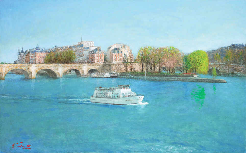 大津英敏「セーヌ川と白い船」72.7×116.7cm