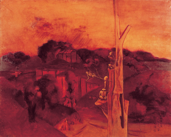 その後帰郷し、岡谷で教職に就いた矢﨑は、《時雨と猿》(宮城県美術館蔵)などの制作を通じ、俳諧におけるシュルレアリスムの幽玄を絵画に求めたが、残念ながら29歳の若さで戦地に散っている。