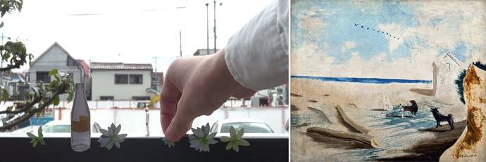 (右)吉原治良《犬と雁》1931年 油彩・布 芦屋市立美術博物館蔵