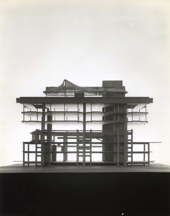 また菊竹は建築の構想から設計が完成するまでの思考過程について“か”(構想)、“かた”(技術)、“かたち”(形態)の三段階方法論を提案したことでも知られている。今展では“かたち”を示す実施設計図や竣工写真だけでなく、“か”、“かた”の思考過程を読み取ることができるスケッチや語録等にも注目し、展示。代表作であるスカイハウス、出雲大社庁の舎、ホテル東光園、都城市民会館、実現しなかったが優秀作品に選ばれた京都の国立国際会館設計競技案などのオリジナル資料を展示し、「メタボリズム」や「か・かた・かたち」の理論の実践を紹介する。