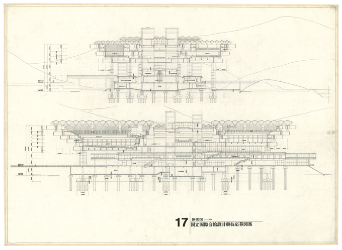 京都の国立国際会館設計競技案 断面図 © 株式会社菊竹清訓建築設計事務所