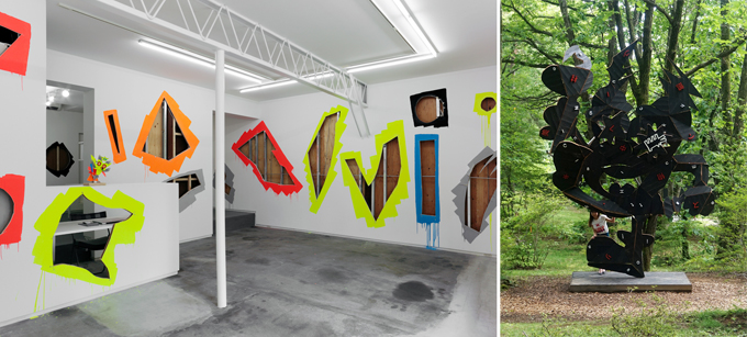 (左)山下拓也《TALIONの子》2014 TALION GALLERYの壁、塗料 size varies