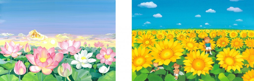 左: 『おじぞうさんは いつでも』より 右: 「ひまわり畑で」