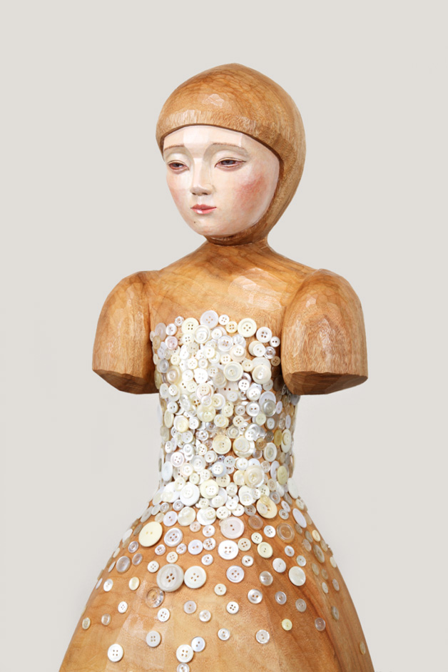 「強制のトルソ―ボタンの少女」(部分) 2012 楠材の一木造りに彩色、ボタン 111×35×28.5cm 撮影:宮島径 ⒸTANADA Koji/Courtesy Mizuma Art Gallery