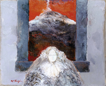 絵画への志を胸に高校の美術教師を辞し、抑制のきいた色調の中、「白」が際立つ女性像を描いてきた杉山吉伸(1937年栃木県生まれ、日展評議員、光風会理事)。日展、光風会展、個展での発表を継続、郷里での文化推進にも力を注ぎ、栃木県文化協会理事なども歴任する洋画家である。