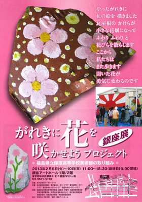 校舎の損壊など、東日本大震災の影響を受けた福島県立保原高等学校(福島県伊達市)。同校の美術部員らを中心に取り組む「がれきに花を咲かせようプロジェクト」の活動が、東京・銀座で紹介される。