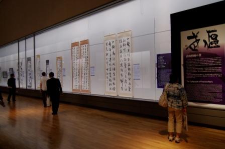 3部構成の展示となり、第1部「青山杉雨の眼」では、杉雨の中国書跡・絵画の逸品揃いのコレクション。第2部「青山杉雨の書」では、代表作全120件のうち約30件が全期間、他は前期(7/18~8/19)・後期(8/21~9/9)に分けられて展示される「白楽天・間夕」(1938年作)、「萬方鮮」(1977年)、「黒白相変」(1988年)等、1作ごとに変化と気迫に溢れ「一作一面貌」と賞賛された作品が並んでいる。