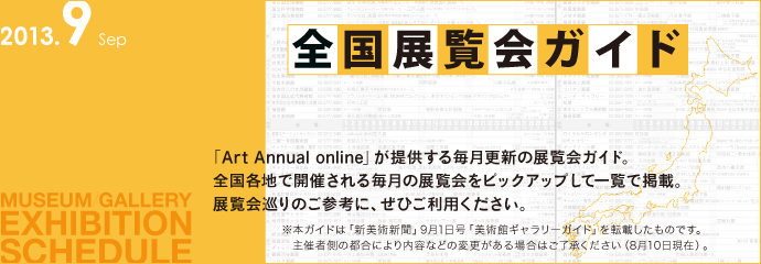 ※タイトル画像をクリック、もしくは右よりご覧いただけます。【 2013.9 全国展覧会ガイド 】
