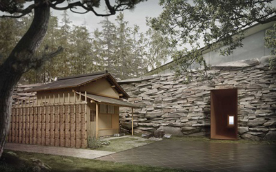 急峻な箱根外輪山を背に、相模湾に臨む新施設は、財団の活動拠点として美術品鑑賞の為のギャラリー棟、茅葺の能舞台、茶室「天正庵」の再興、室町時代の遺構である明月門の移築、回遊式庭園、オフィス棟などから構成される予定だ。また、建設にはニューヨークのジャパンソサエティも特別支援を行っており、今後の両者の取組みも期待される。完成は2016年の予定。