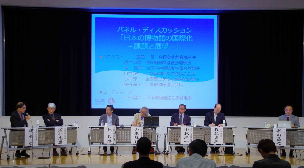 ディスカッションでは半田昌之・日本博物館協会専務理事をコーディネーターに銭谷氏、建畠晢・全国美術館会議会長(埼玉県立近代美術館長)、酒井忠康・美術館連絡協議会理事長(世田谷美術館長)、林良博・全国科学博物館協議会理事長(国立科学博物館長)、山本茂行・日本動物園水族館協会会長(富山市ファミリーパーク園長)、小林淳一・全国歴史民俗系博物館協議会(江戸東京博物館副館長)が登壇。博物館、美術館系の連合体の主なる組織とされる代表・トップが一堂に揃った。