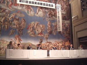 総会には全国から会員館130館の館長、学芸関係者223人が参加、事業・決算の報告や予算(案)の承認、3・11震災後の各企画委員会の活動経過報告、それを受けた特別セッションの討議が夕刻過ぎまで行われた。