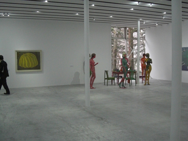 各展示室は明るいホワイト調の壁面、奥は草間彌生の平面と立体作品