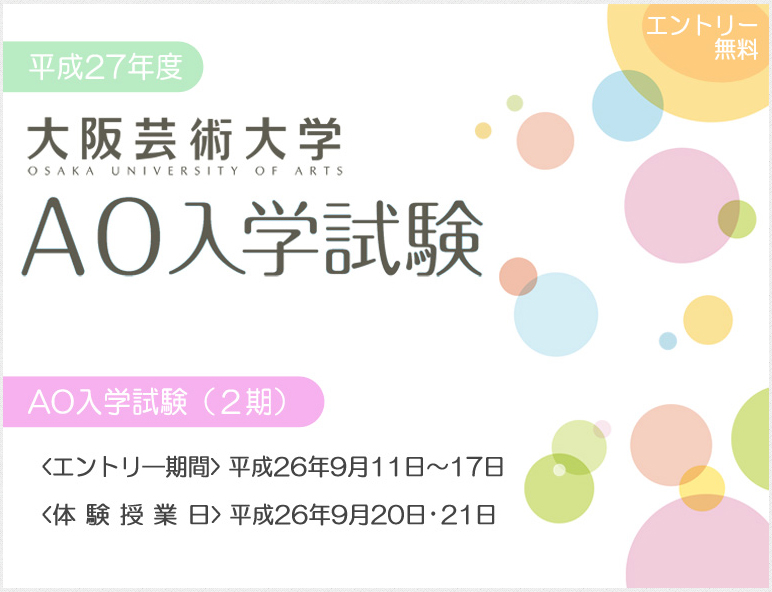 入試に関する詳細は大阪芸術大学ウェブサイトを参照のこと。