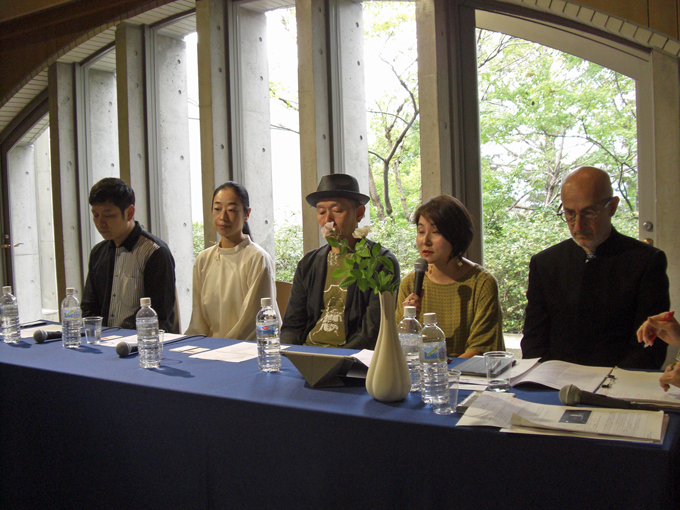 (左から)名和晃平氏、珠寶氏、椿昇氏、大江ゴティニ純子・特任館長、クリスチャン・メルリオ館長