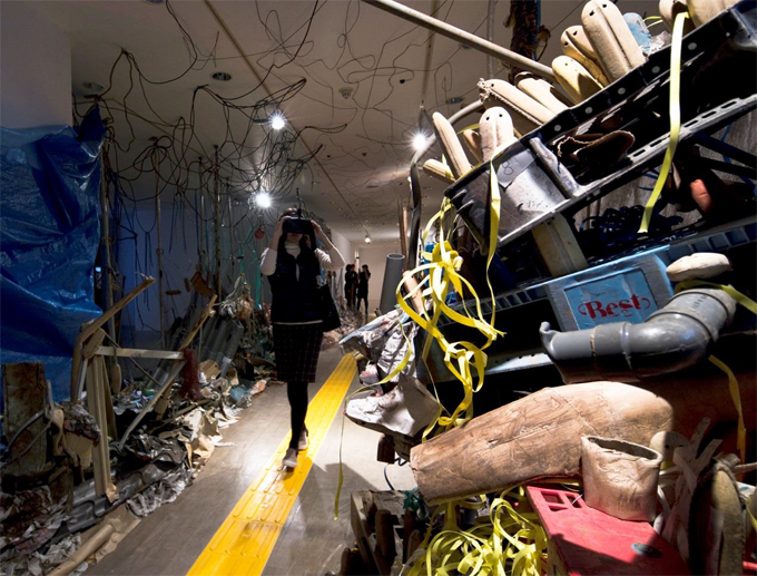 オキュラス・リフトを装着した来場者は、約35メートルの距離のギャラリーを歩く。オキュラス・リフトとともに来場者が装着しているビーコンから超音波が発信され、会場の位置を受容機器が把握し、来場者の進行方向にあわせてオキュラス・リフトの中の映像も変化。来場者はガレキの中を歩くが、オキュラス・リフトの中には日本の自然の原風景が広がっており、同作はその実際のものとオキュラス・リフトのヴァーチャル・リアリティ空間のギャップを考察する作品となる。