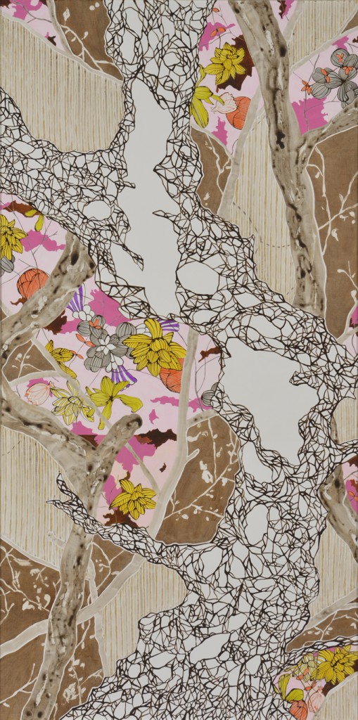 大橋麻里子《La Foret》2014年 油彩、アクリル、色鉛筆、キャンバス 194×97㎝