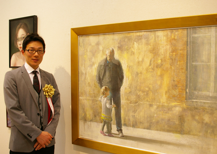 最高賞「昭和会賞」には、洋画の土井久幸氏(1976年和歌山県生まれ、独立美術協会準会員)が決定した。土井氏は画塾での勉強ののち、ほぼ独学でクレパス(オイルパステル)の技法を習得。「自分の描きたいものを描ききれた自信はあったのですが、評価される絵ではないと思っていた」と予想外の受賞を喜ぶ。クレパスの魅力のひとつは、表現として「弱い絵」を描けることといい、「見る人の心に寄り添い、感じたいように感じることのできる作品でありたい」と抱負を語った。